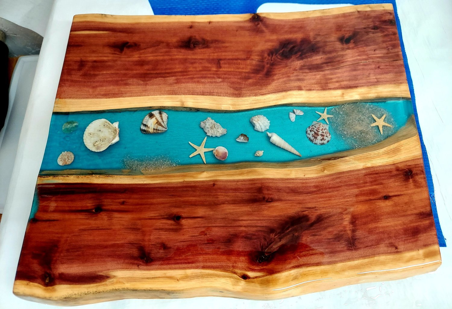 Being born and raised on the west coast of Florida, we love the outdoors and all nature has to offer. Rick has been a full time framing carpenter since 1985. In the last 5 years he has used his carpenter skills in creating beautiful furniture using epoxy and live edge natural wood. He has the creativity to look at an individual slab and see a unique "one of a kind" piece of furniture. Together, we make a good team building a business out of something we enjoy.