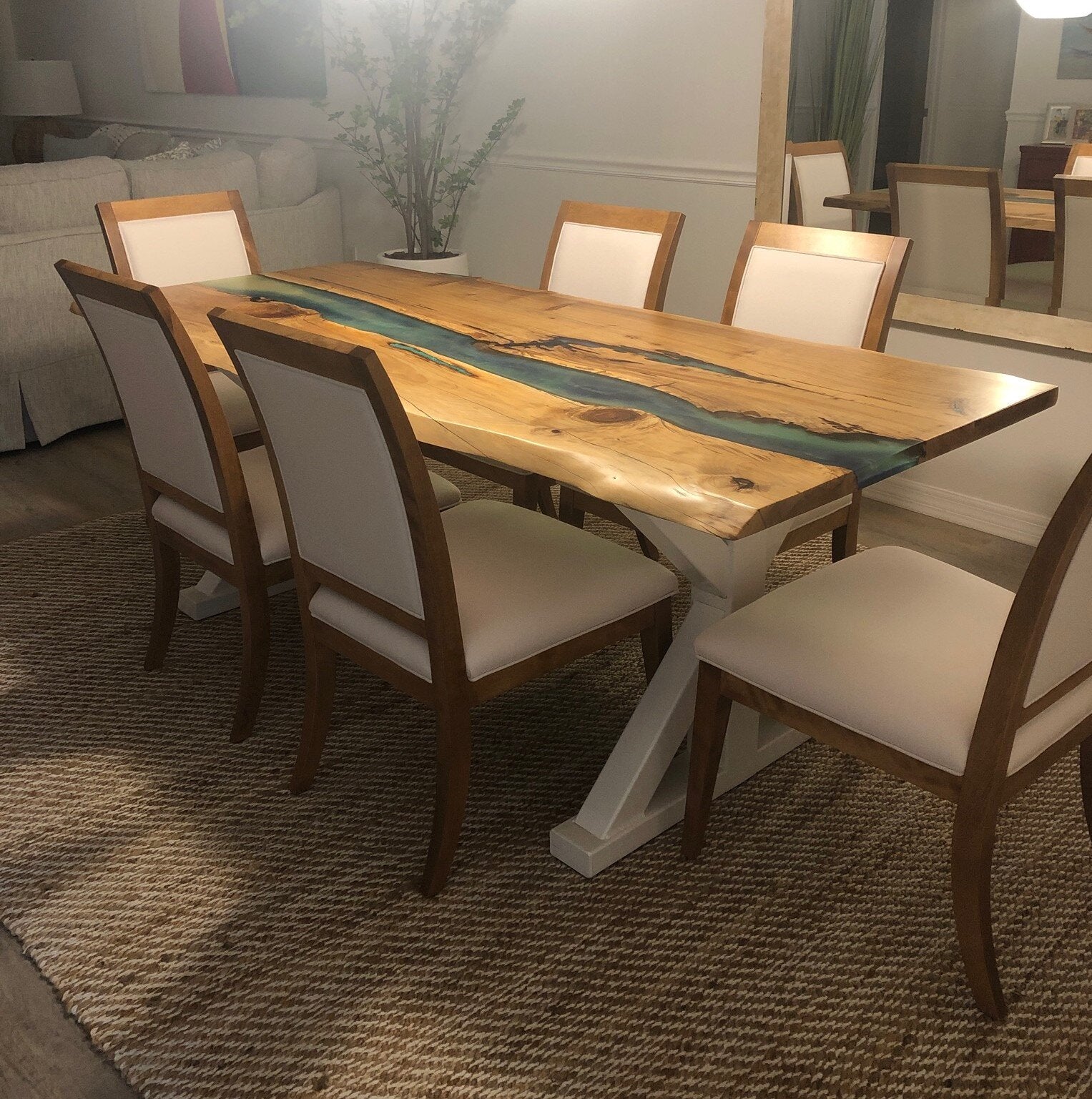 Amazing dining tables using beautiful wood highlighted with your choice of colored epoxy. Whether you choose a solid natural wood table or a river table with colored epoxy running through it, we will be sure to capture the natural beauty in every piece.