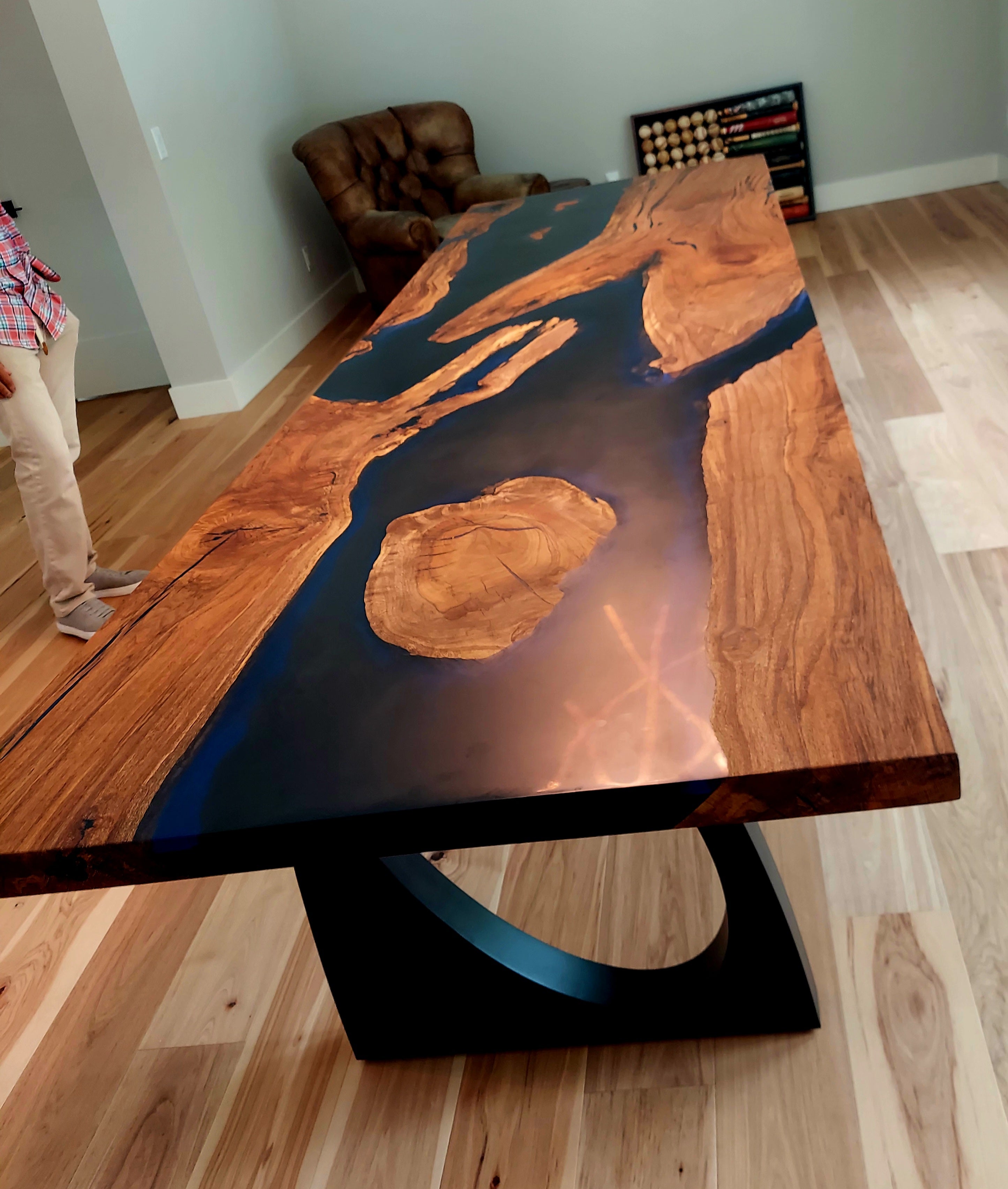 Amazing dining tables using beautiful wood highlighted with your choice of colored epoxy. Whether you choose a solid natural wood table or a river table with colored epoxy running through it, we will be sure to capture the natural beauty in every piece.
